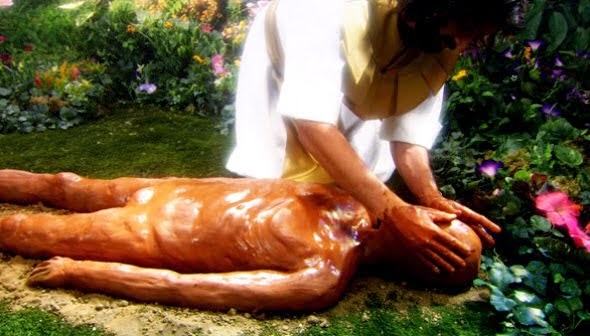 fez o homem de barro e a mulher de sua costela. Uma linda historinha, até bem bobinha, simplória e distanciada da verdade.